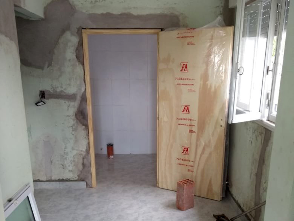 En el sector de acceso y sala de espera se realizó un nuevo contrapiso, colocándose piso cerámico esmaltado con zócalo del mismo material. Asimismo, se cambió la puerta del frente por una nueva de aluminio.