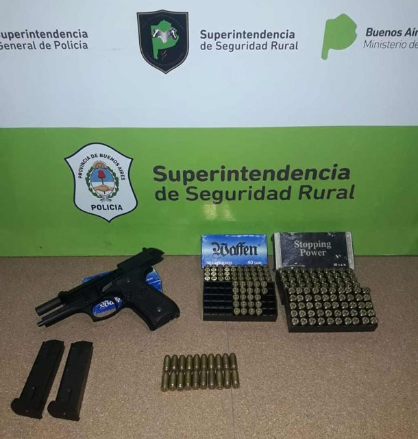 Se halló en el interior del rodado una pistola semi automática calibre 40 milímetros con una centenar de municiones, sin ninguna documentación habilitante, razón por la cual se procedió al secuestro de la misma en presencia de testigos.