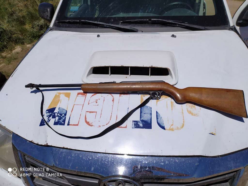 Hallándole en el interior del rodado una carabina semi automática calibre .22 milímetros, sin la documentación habilitante, razón por la cual se procedió al secuestro de la misma en presencia de testigo.