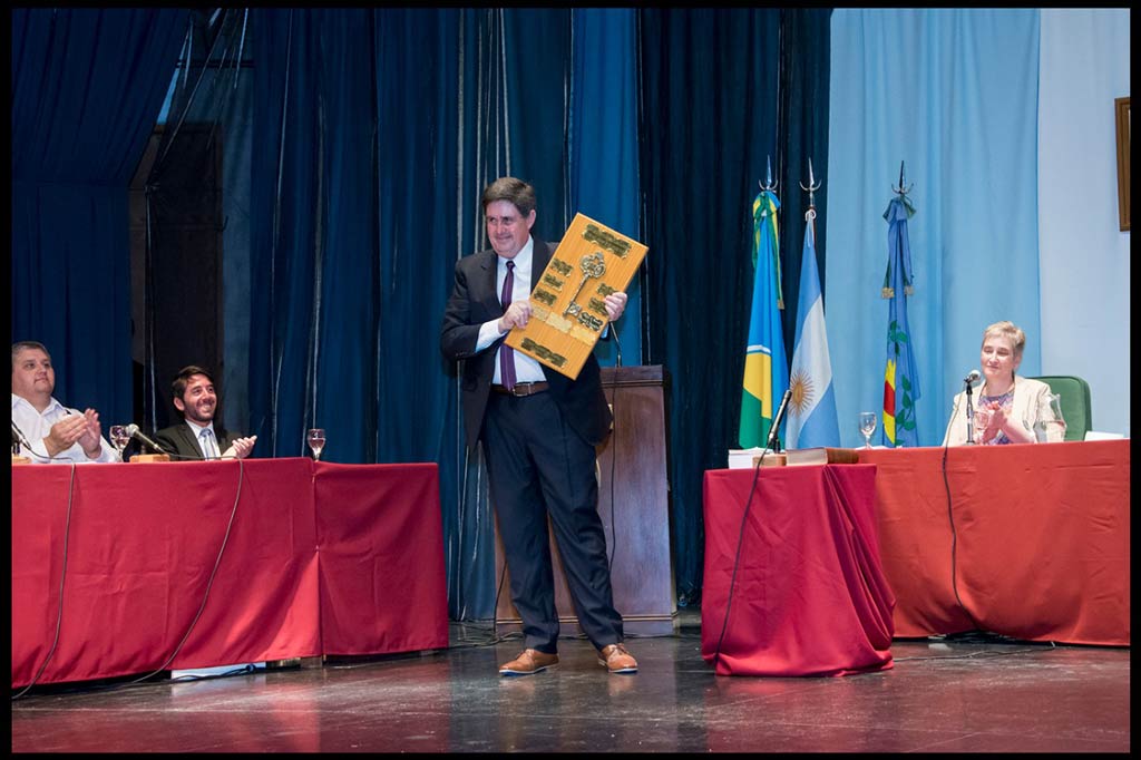 En un acto llevado a cabo en el teatro “Tulio Cosentino”, Miguel Gargaglione asumió por cuarto período consecutivo al frente de la Municipalidad de San Cayetano. Luego del correspondiente juramento, y recibir de manos del ex Intendente Juan Carlos Marlats, la llave simbólica del despacho (acto instituido en el año 1987 como continuidad del proceso democrática) el Jefe Comunal envió un mensaje a la comunidad.