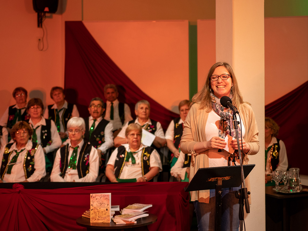 Por su parte, la Licenciada en Psicología Ana Clara Gargaglione agradeció el dejarla ser parte del libro, en el cual se “plasma un poco lo que ellos tienen de homogéneo y heterogéneo. De homogéneo en lo que es el empuje, en el envejecimiento activo, en la creatividad, todos aportan su granito de arena, y en lo heterogéneo porque son distintos tipos de relatos, cada uno pone parte de su singularidad. Que lo disfruten al libro como lo voy a ser yo”.