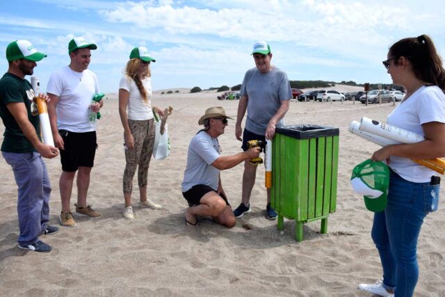 La colocación de colilleros construidos con plástico recuperado fue otra de las acciones llevadas a cabo el pasado domingo. El Intendente Gargaglione, acompañado por funcionarios municipales, colocó estos cestos en ambas zonas de baño; dicha acción se replicará en otros sectores de la villa balneario y, próximamente en la ciudad.
