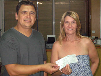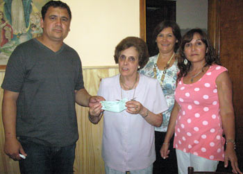 A Caritas se le hizo entrega de otro recibiéndolo Mabel Fernández y a miembros de la nueva comisión.