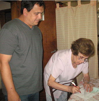 En primer lugar se entregó a la Biblioteca Bernardino Rivadavia recibiéndolo la presidenta de dicha institución Ana Delia Rodríguez.