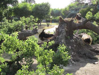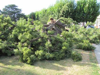En horas de la mañana personal de la Dirección de Servicios Públicos se encontraba retirando cada una de las ramas diseminadas en el lugar. Hasta tanto no se tome una decisión sobre un posible reemplazo la raíz no será extraída.-