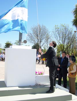 Previamente el secretario de Gobierno y Hacienda, Ignacio Marlats; el alumno Nicolás Di Paulo y la vecina Elsa Redondo procedieron a izar el pabellón nacional, acto que imitaron, con la bandera española, el presidente del Honorable Concejo Deliberante, Juan Adrián Laborde; la docente Soledad Cosentino y la vecina Esperanza Amaro. Asimismo fueron entonadas las estrofas de los himnos nacionales argentino y español.
