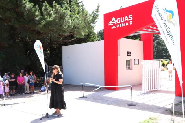 A la hora en que el viento oeste soplaba con intensidad en la costa, el frondoso pinar que rodea el Complejo invitaba a los presentes a bañarse una y otra vez en las llamadas piletas de arena. Previo a ese momento, el Intendente y la Subsecretaria de Turismo de la provincia de Buenos Aires, Soledad Martínez fueron los encargados de dar los discursos inaugurales.