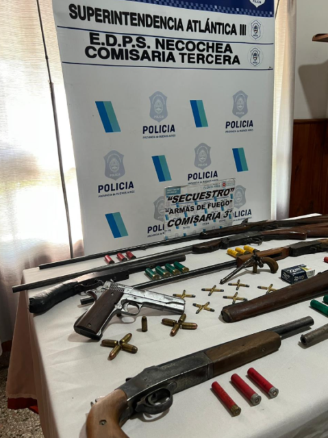 Un operativo realizado por personal del Gabinete Técnico Operativo de la Comisaría Tercera de Necochea, con apoyo de grupos especiales, permitió esclarecer un hecho de amenazas y hurto denunciado días atrás, y derivó en el secuestro de un importante número de armas de fuego en una vivienda de San Cayetano.