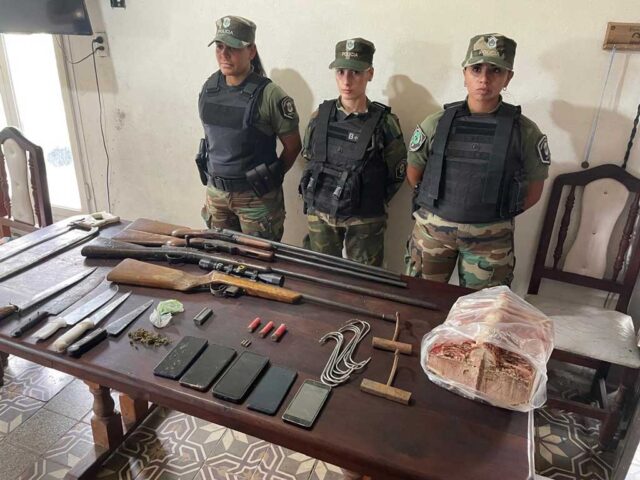 El Comando ded Prevención Rural de San Cayetano informa que a raíz de  un Abigeato ocurrido en un Establecimiento Rural del distrito, se realizaron allanamientos en una localidad del partido de Tres Arroyos. Se procedió al secuestro de armas de fuego ,  elemento de corte carne vacuna y estupefacientes.