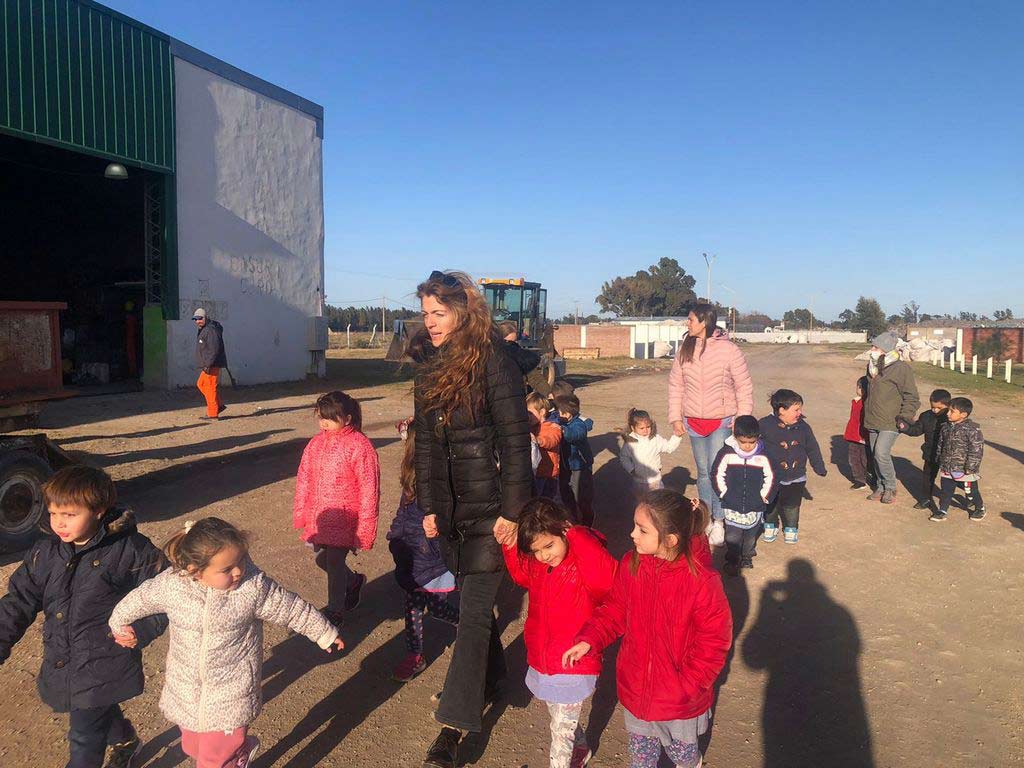 La visita educativa se tradujo en un recorrido por las diferentes estaciones de trabajo, donde se les fue explicando la función de las máquinas, y la recuperación de los distintos materiales. También se observaron los boxes de acopio, la pileta de lixiviados y la zona de chipeo de ramas.