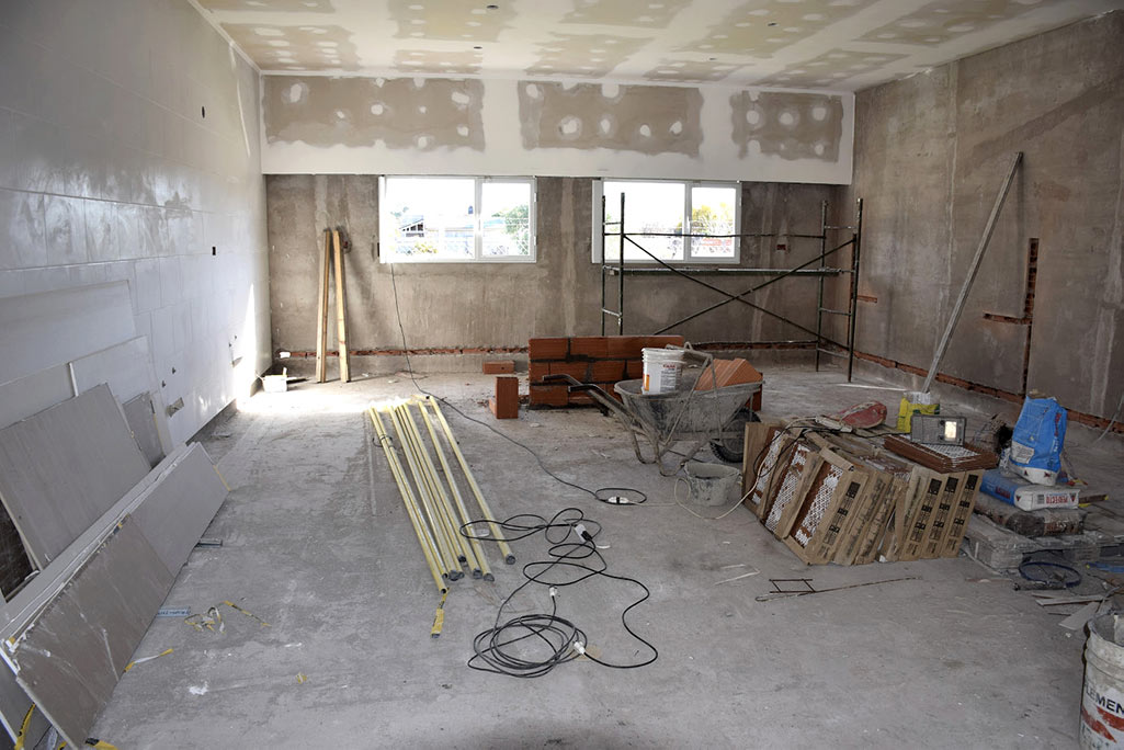 Culminada la colocación del sistema de calefacción, actualmente se trabaja en la construcción de los cielorrasos y la instalación eléctrica, agua y desagües cloacales.