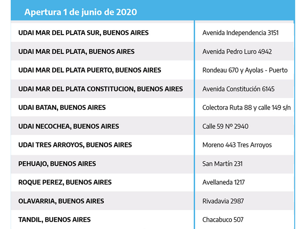 La ANSES informa que ya cuenta con 24 oficinas que se encuentran atendiendo al público con un sistema de turnos programados. A partir del lunes 1° de junio se realizará la reapertura de 36 Unidades de Atención Integral (UDAI) que se sumarán a las que se encuentran funcionando, resultando un total de 60 delegaciones abiertas en todo el país.