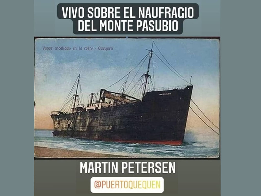 Conmemorando el 97° aniversario del naufragio del vapor Monte Pasubio, en la tarde de hoy jueves 1 de abril, el área de Relaciones Institucionales del Consorcio de Gestión de Puerto Quequén realizó una breve reseña a cargo de Martín Petersen, mediante un vivo de Instagram.