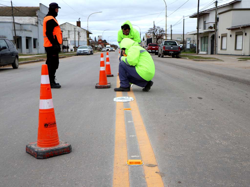 Personal municipal comenzó a colocar tachas reflectivas divisorias en Avenida Hernán Apezteguía, desde Ruta Pcial. Nº 75 hasta su intersección con la Avenida Sargento Cabral.
