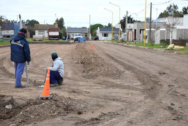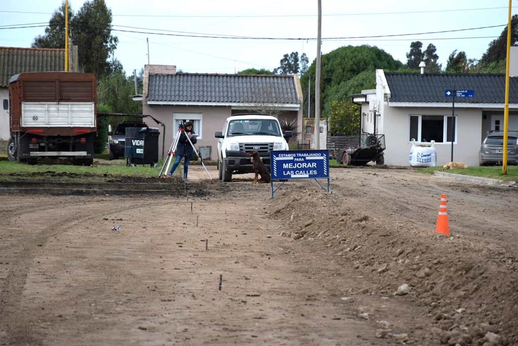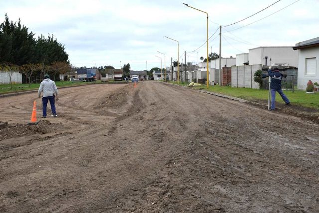 Los trabajos comenzaron en calle “María Angélica Almeida de Hauri”, entre Ugarte y Sarmiento. Allí, personal municipal se encuentra nivelando el terreno, para luego llevar adelante el preparado de base y posterior relleno con hormigón.