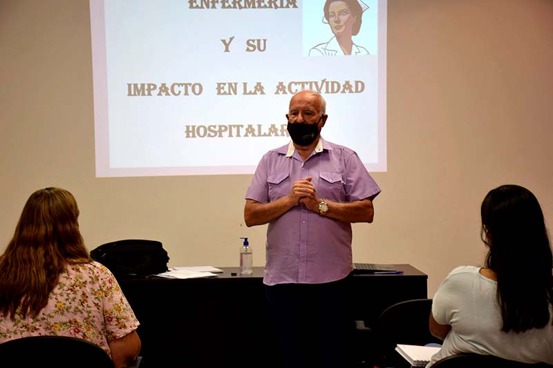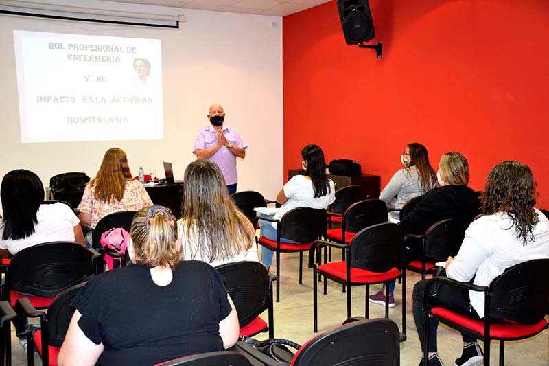 “Rol profesional de la enfermería y su impacto en la actividad hospitalaria” está a cargo del Licenciado en Enfermería, Juan Carlos Caruso. Por cuestiones organizativas se dividió el recurso humano, tanto enfermeras como mucamas, en dos grupos, concretándose las jornadas los días lunes y viernes, hasta el 31 agosto, en el Espacio Cultural.