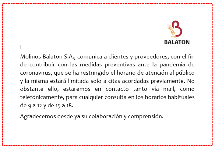 Comunicado a clientes y proveedores de Molinos Balaton