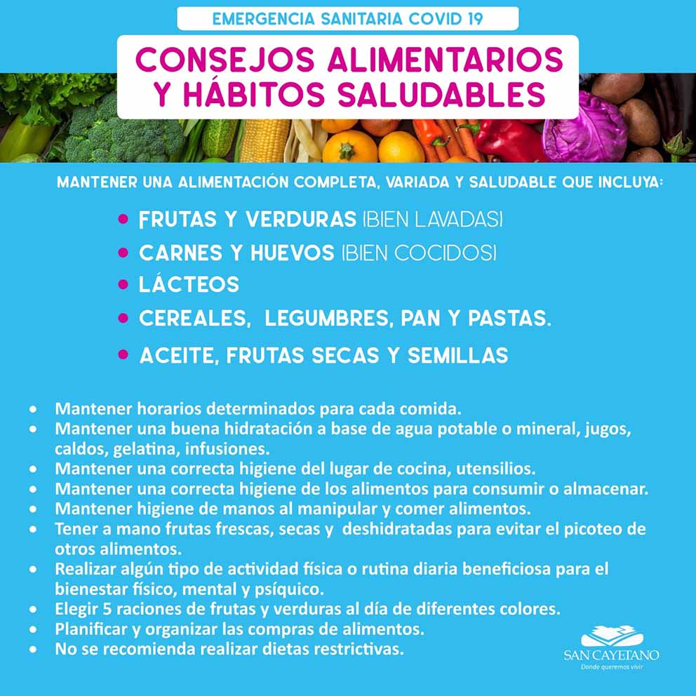 En el marco de la Emergencia Sanitaria a causa del COVID 19, el equipo de Nutrición del Hospital Municipal brinda los siguientes consejos alimentarios y hábitos saludables: