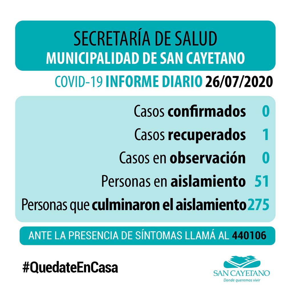 Sin toma de muestras en el día de la fecha continuamos sin casos activos de COVID 19, ni en observación.