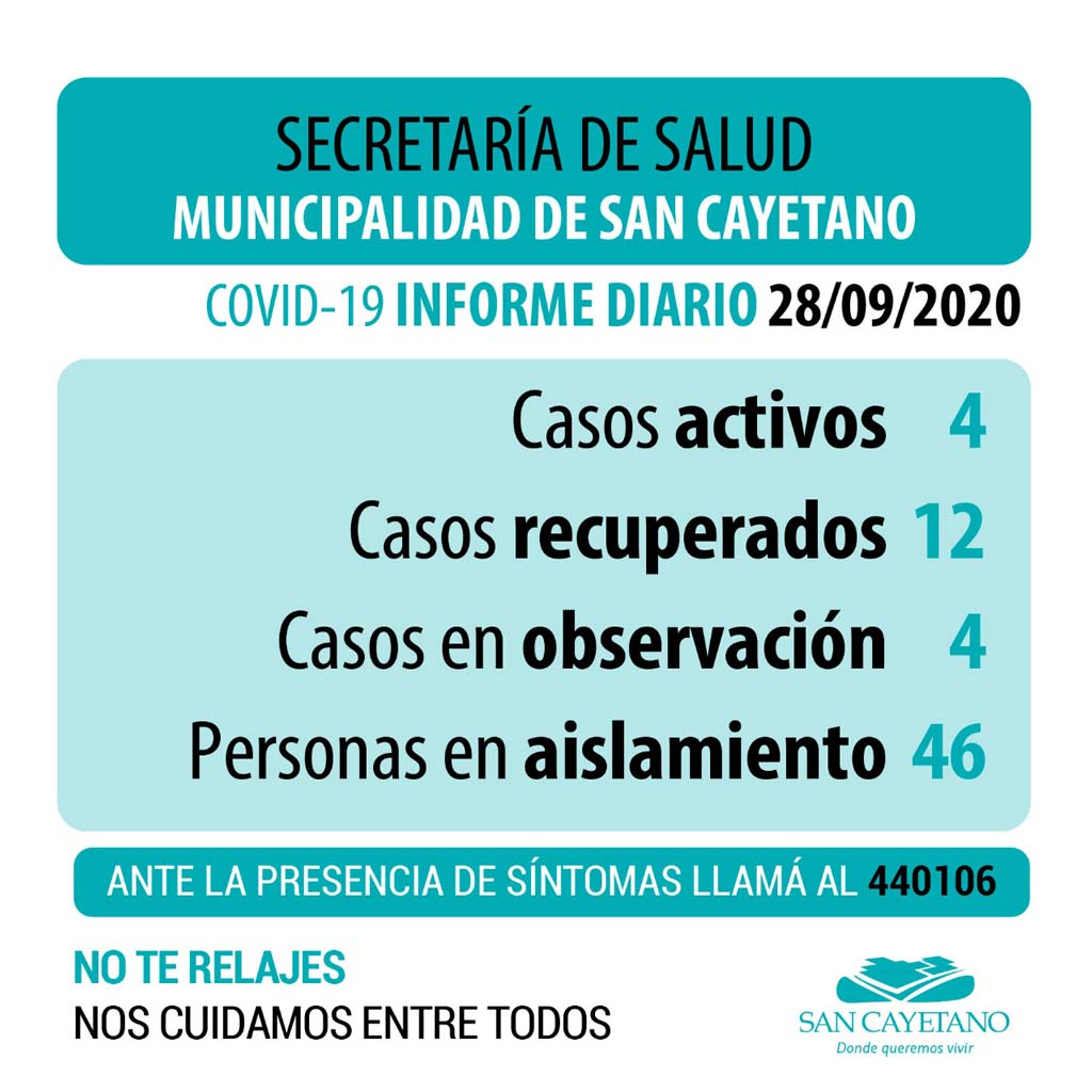 Los 4 casos activos evolucionan de manera favorable en sus domicilios.
