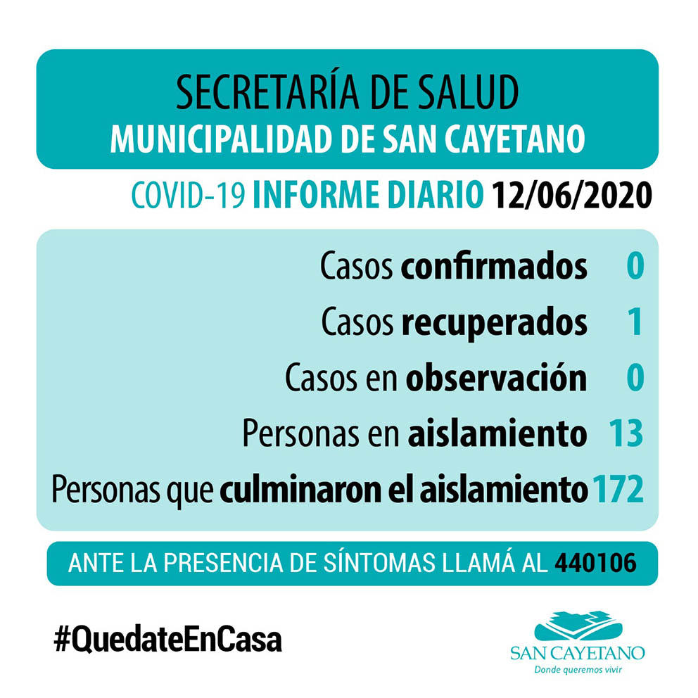 En San Cayetano no hay casos activos de COVID 19 ni en observación.
