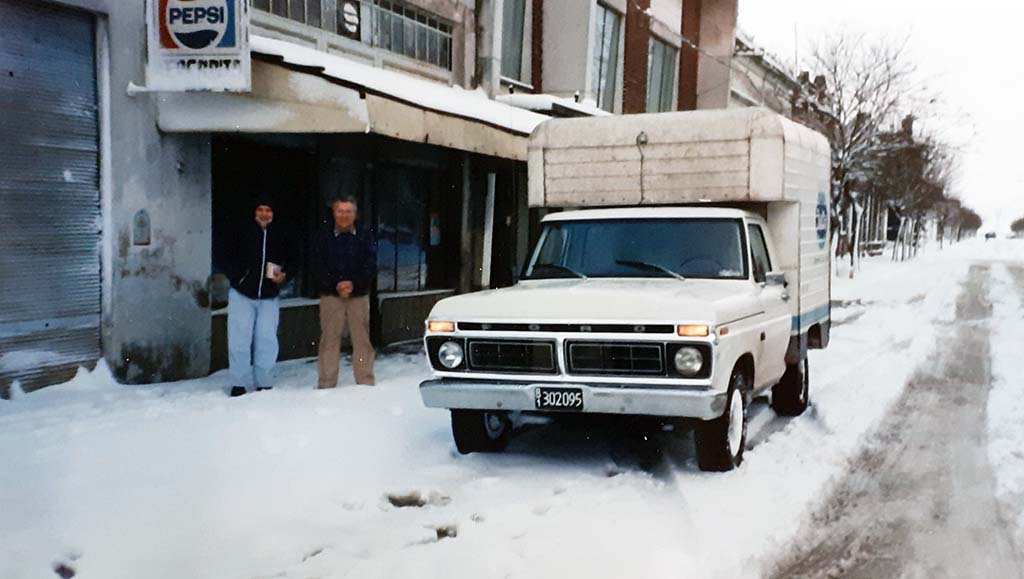 El modelo de negocios no era el mismo de ahora, se llevaba la mercadería encima del camión y se entregaba en el momento. En aquella época se usaban dos Ford 350 y una F100, todas cargadas. Ya estaba Mario Ferreira (hoy en Arrate), mi papá y yo. Más acá en el tiempo trabajó Fernando Abad. Por los años noventa y pico, yo tomo el partido de Tres Arroyos, incorporándolo al recorrido de la distribuidora.