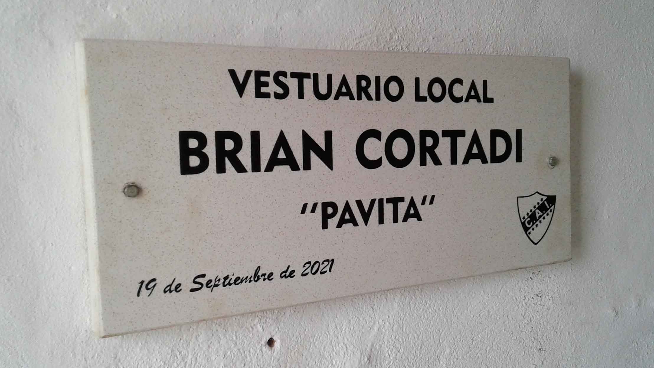 Tras la catarata de respetuosos aplausos propios y ajenos se produjo el descubrimiento de la placa que lleva su nombre y que da la bienvenida al vestuario local, ubicado en el primer piso, llamado orgullosamente Brian Cortadi.