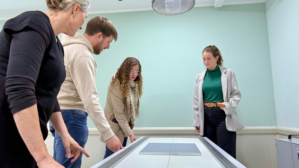 El Intendente interino Alejo Christiansen junto a la Secretaria de Salud, Daniela Skaarup; la Secretaria de Gobierno y Hacienda, Melisa Eriksen; la Directora Administrativa del Hospital, Julieta Clausen y profesionales técnicos que se desempeñan en el Centro de Diagnóstico por Imágenes presentaron el nuevo instrumental que ya se encuentra operativo.