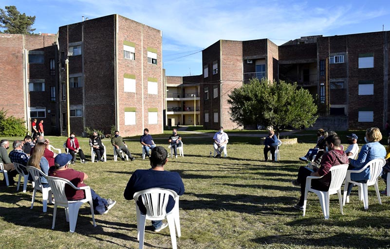 Durante un par de horas, el Intendente Miguel Gargaglione y parte de equipo de gobierno se reunieron, al aire libre, con vecinos del Barrio Mariano Moreno. El propósito del mismo era escuchar las inquietudes y tratar de brindar soluciones a los inconvenientes que pudieran tener los habitantes de este complejo habitacional.