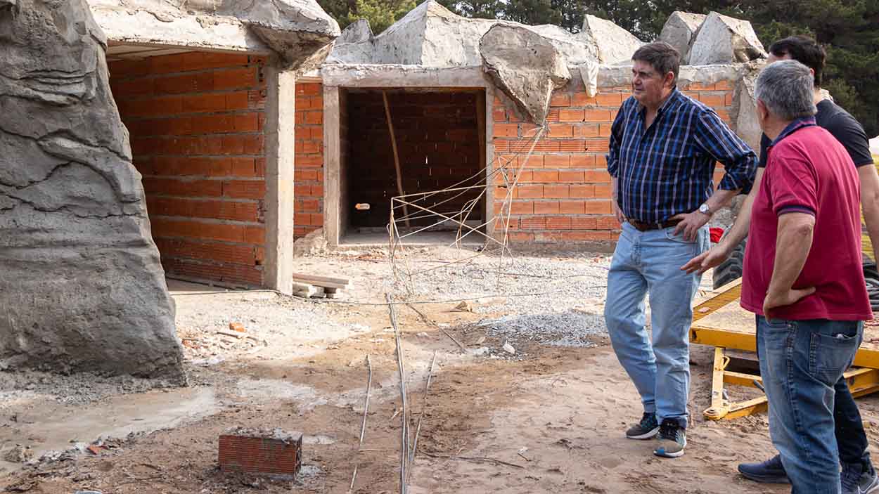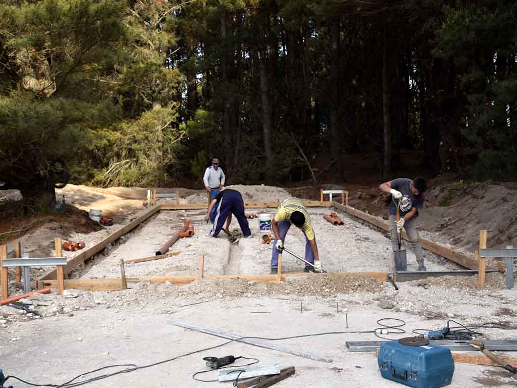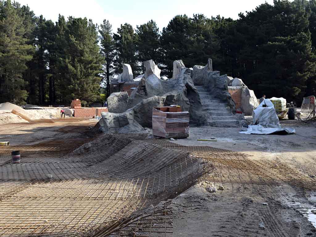 Se construye la cascada y tobogán sobre la construcción que alberga la sala de máquinas.