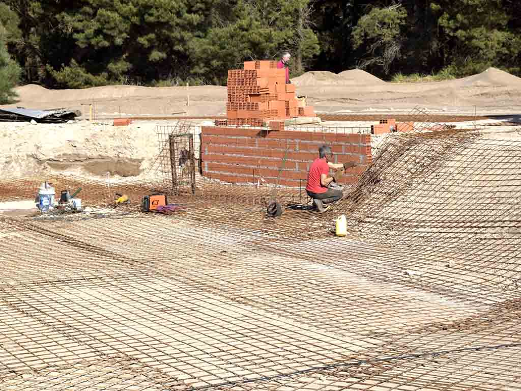 Está pronto a finalizarse la armadura de hierro para el posterior gunitado de la pileta.