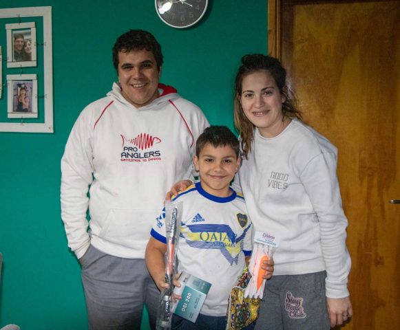 A minutos de conocerse los ganadores y luego de contactarse telefónicamente, autoridades del Club se dirigieron a cada uno de los domicilios para entregar en mano las cañas con reel y los elementos necesarios para una jornada de pesca.