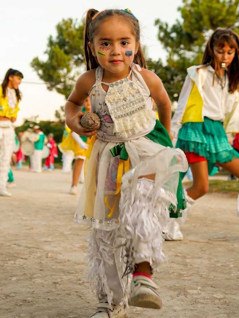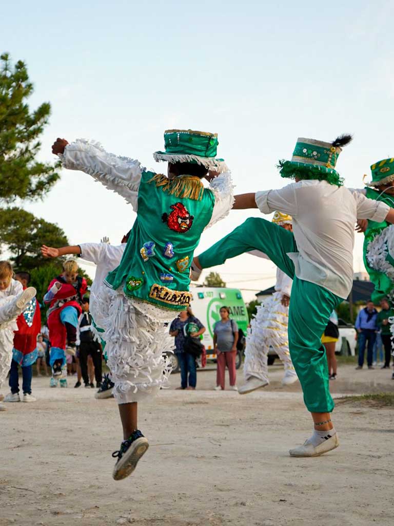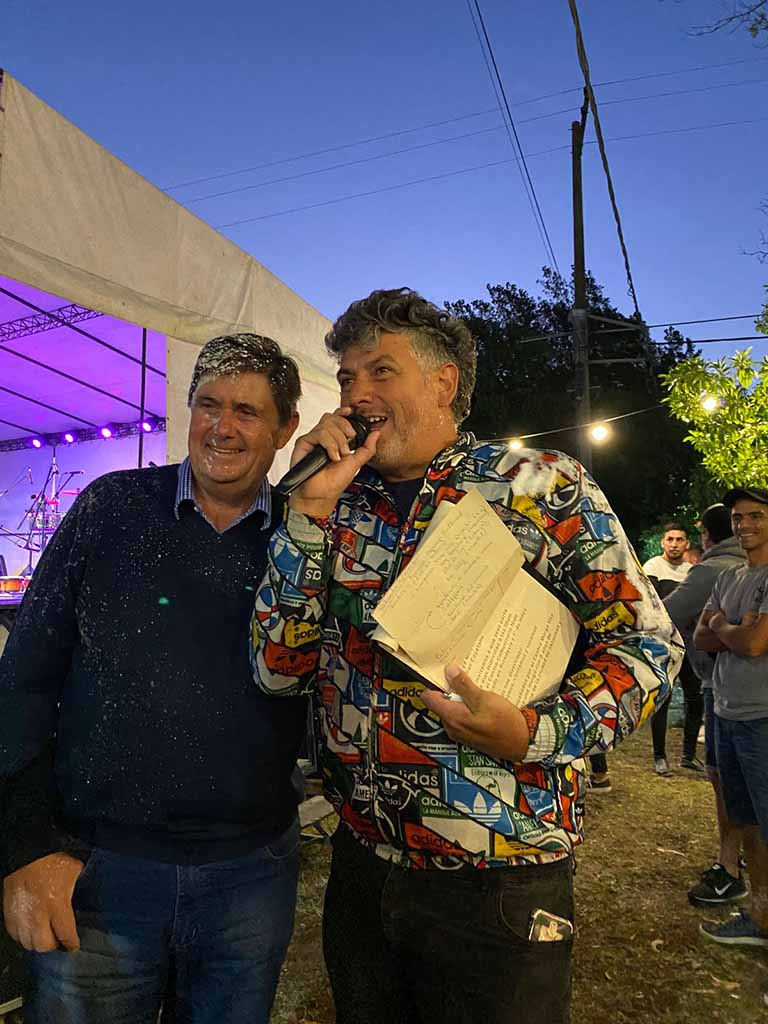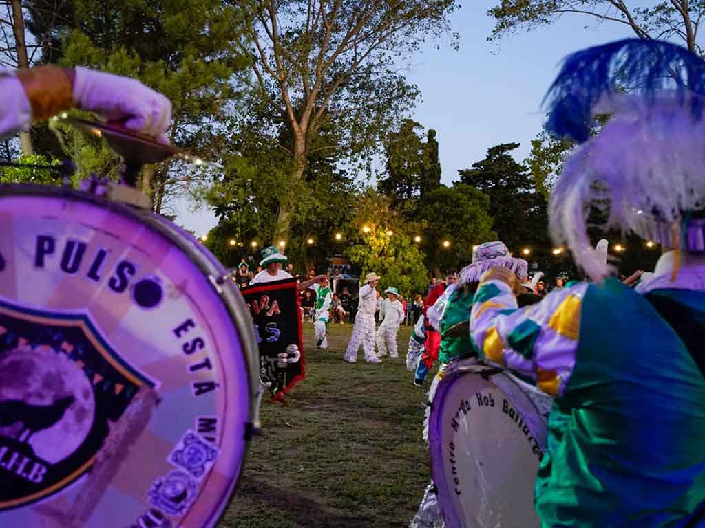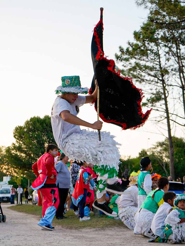 Detrás, la murga local “Mira mis guantes” y “Hoy bailaré” de Necochea con alegría y color fueron contagiando al público que se fue sumando y formando parte de la celebración.