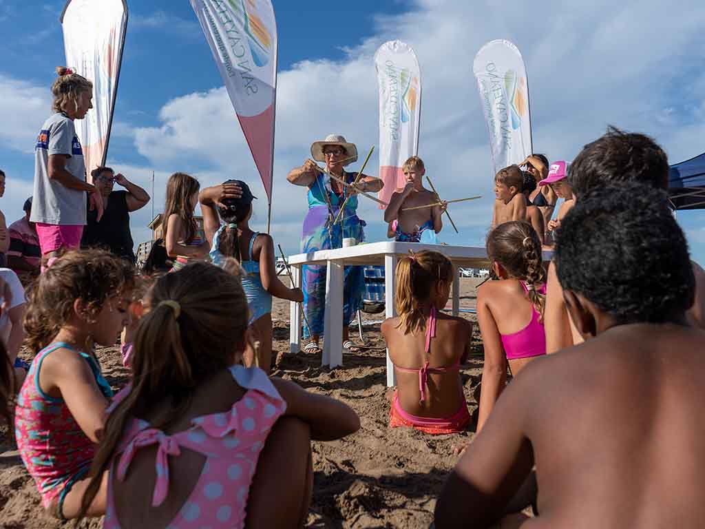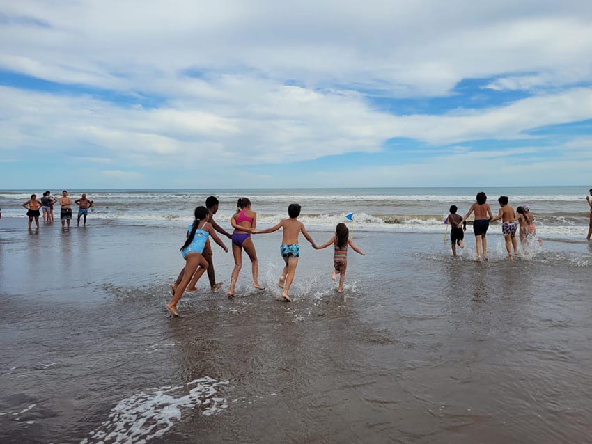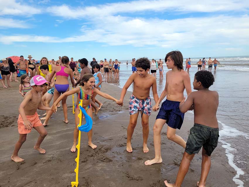 Al ritmo de la música que sonó durante la tarde en la zona de baño, chicos y grandes “agasajaron” a los guardavidas participando de juegos en la arena, construyendo figuras, barriletes y observando los simulacros de rescates en el mar.
