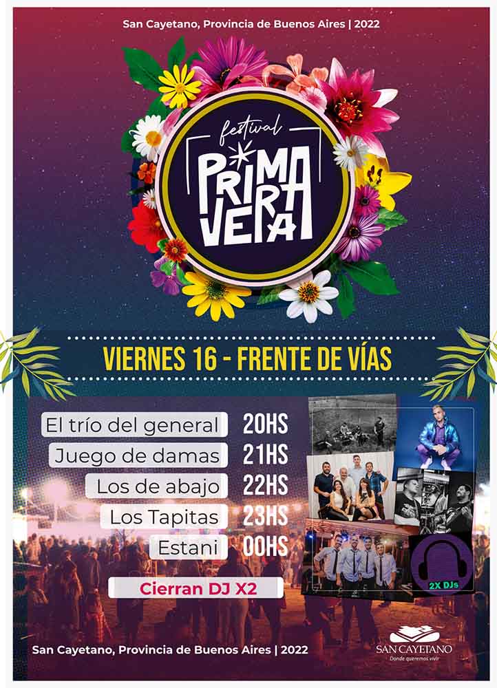Tanto viernes como sábado, culminados los espectáculos centrales, DJ de San Cayetano y la región tendrán su momento en este Festival Primavera 2022.