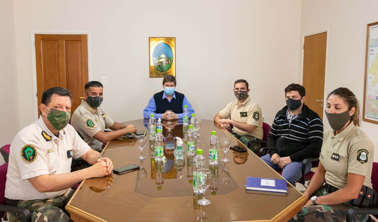 Minutos más tarde se dirigieron a las oficinas del Intendente Miguel Gargaglione a efectos de realizar la presentación formal. Allí se hicieron presentes también el Comisario Inspector Gustavo Tkachuk, Coordinador Zonal Mar del Plata; el Oficial Sub Ayudante del CPR local, Ceferino Negreiro, y el Director de Producción local, Matías Pecker.