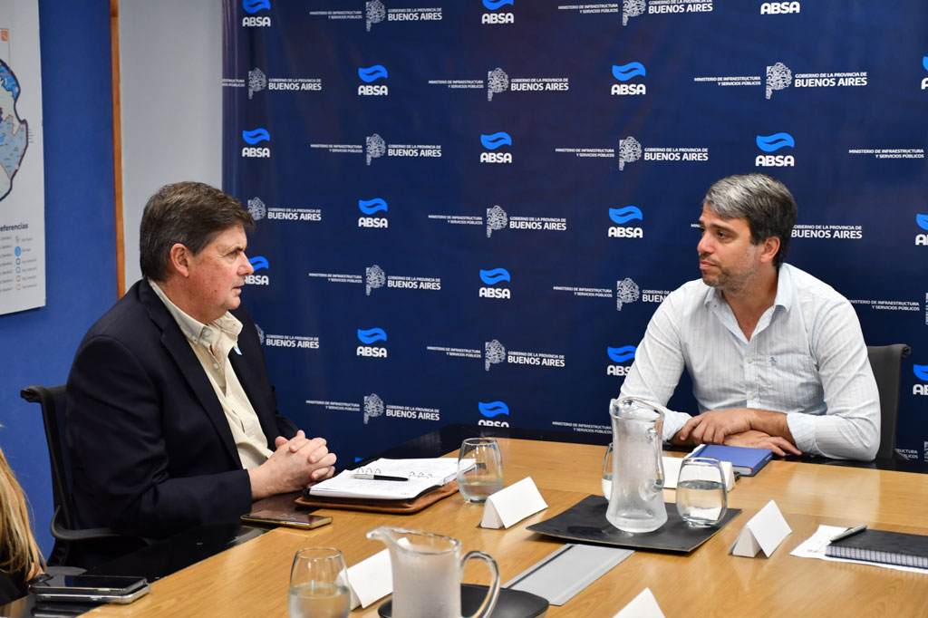 En oficinas de ABSA mantuvieron un encuentro con su titular, Hugo Obed; el Director Titular, Esteban Spivak y el Gerente de Relaciones Institucionales, Rodolfo Mariani. Renovación del convenio vigente; solicitud para que se evalúe la posibilidad de realizar nuevas perforaciones de captación de agua; habilitación de la obra de cloacas en barrio Boca del Tigre, y estado de la torre tanque y edificio de la oficina local fueron algunos de los temas abordados.