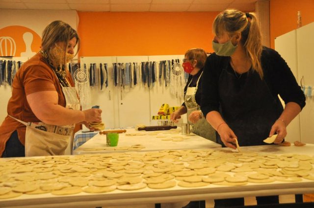 Alumnos del Centro de Formación Profesional coordinados por la chef Mariana Nor por un lado; Estrellas Amarillas con la chef Dominica Iocco por otro, y áreas municipales con sus funcionarios y personal, todos cumpliendo con las medidas de prevención, elaboraron unas 100 docenas de tortas fritas, las cuales fueron distribuidas entre familias sancayetanenses.