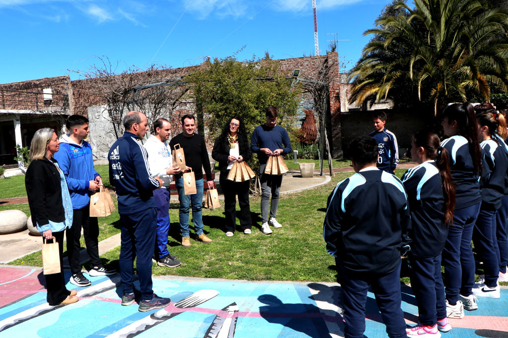 “Estamos agradecidos que hayan elegido San Cayetano para realizar estos entrenamientos; dejo el saludo del Intendente Miguel Gargaglione (ausente por encontrarse de licencia) quien reconoce al grupo como un ejemplo de superación, de compromiso; unidas a través del fútbol”; palabras del Secretario General Juan Altamira al entregarles un recuerdo de San Cayetano a cada una de ellas.