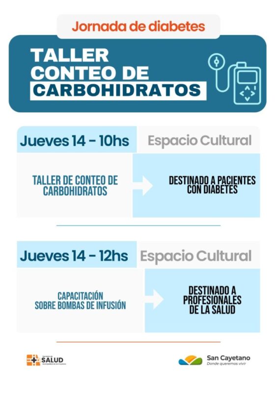 Especialistas en el tema coordinarán un taller de conteo de carbohidratos destinado a pacientes con diabetes, y luego brindarán una capacitación al personal de salud sobre bombas de infusión de insulina.