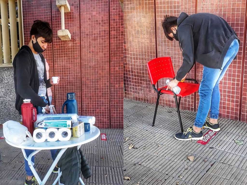 Viendo que allí se aglomeraban muchas personas haciendo filas para los cajeros y sobre todo gente de avanzada edad, decidieron colocar sillas para que esperaran de una forma más cómoda, respetando las distancias, como también les ofrecieron un cafecito o capuchino para el que quisiera, colaborando así en calmar la ansiedad y haciendo la espera más amena.