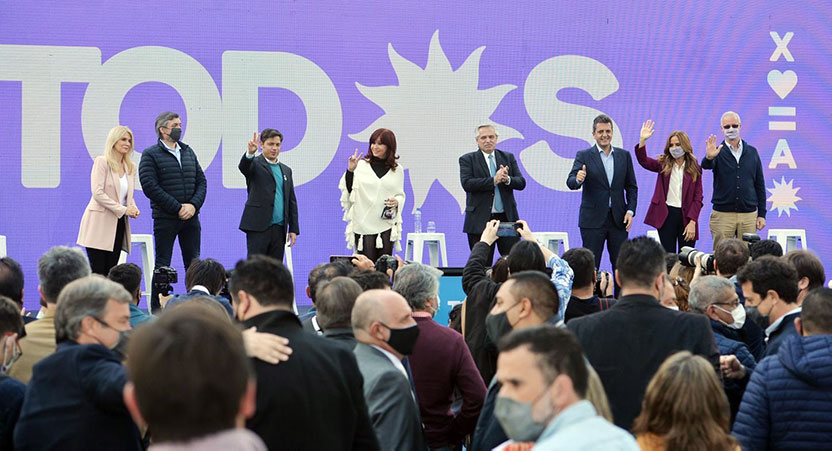 El acto, que se desarrolló al aire libre y sin militantes, fue cerrado con los discursos de la vicepresidenta de la Nación, Cristina Fernández de Kirchner, y el presidente Alberto Fernández.