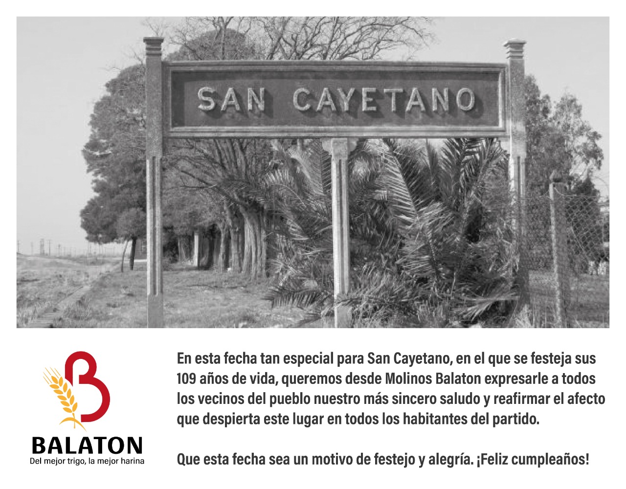 Molinos Balaton saluda a la comunidad sancayetanense en el 109º aniversario de la ciudad