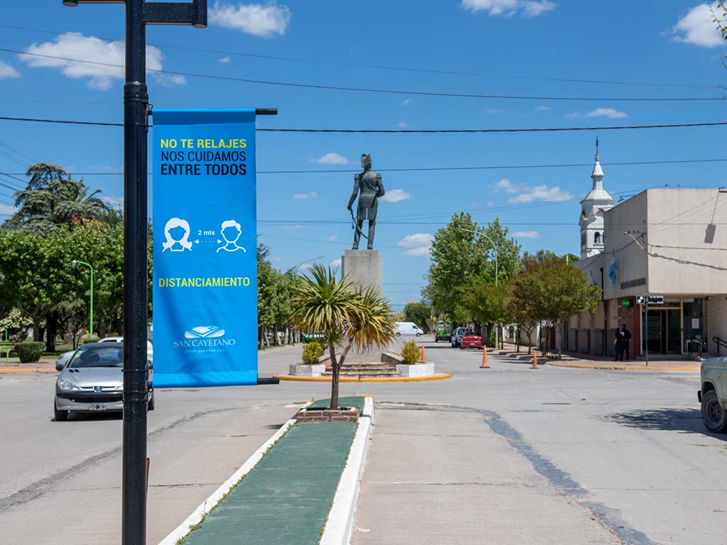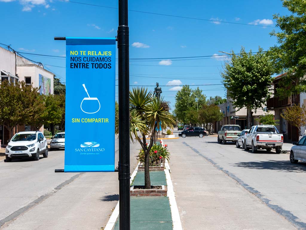 Distanciamiento social, utilización de tapabocas, higiene de manos y no compartir mate son los distintos diseños que pueden observarse en los más de 30 banners de esta campaña denominada “No te relajes, nos cuidamos entre todos”.