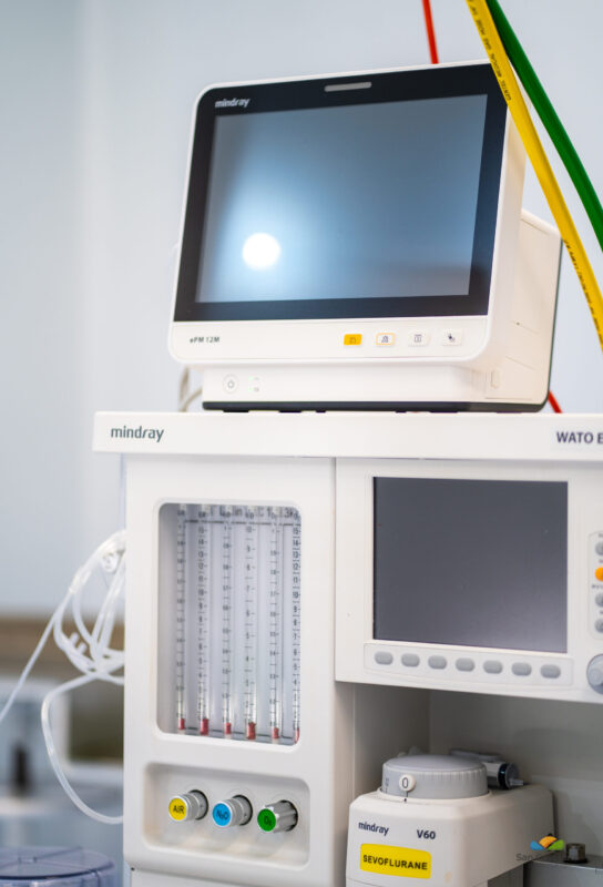 – Mesa anestésica con monitor de última generación, para un control más preciso.