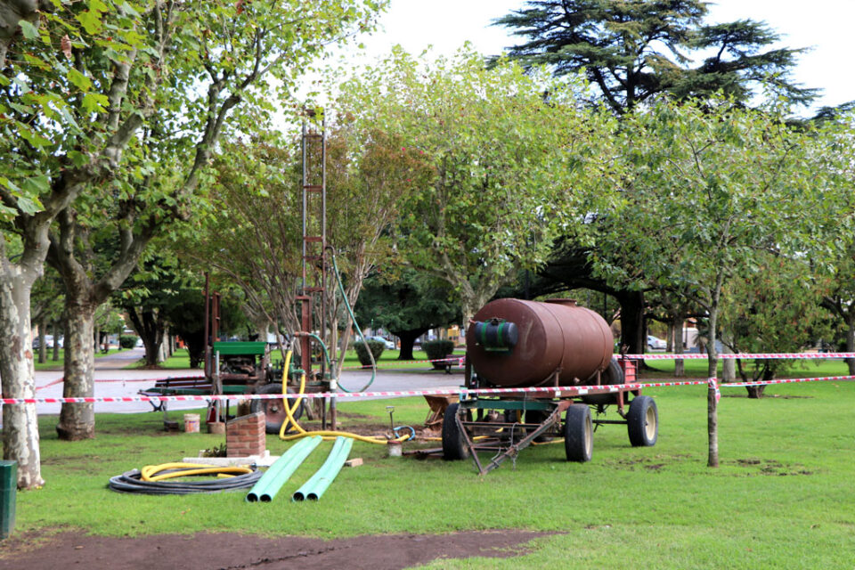 A efectos de optimizar las tareas de limpieza y riego en Plaza América, personal idóneo realizó una perforación para una futura colocación de una bomba sumergible.