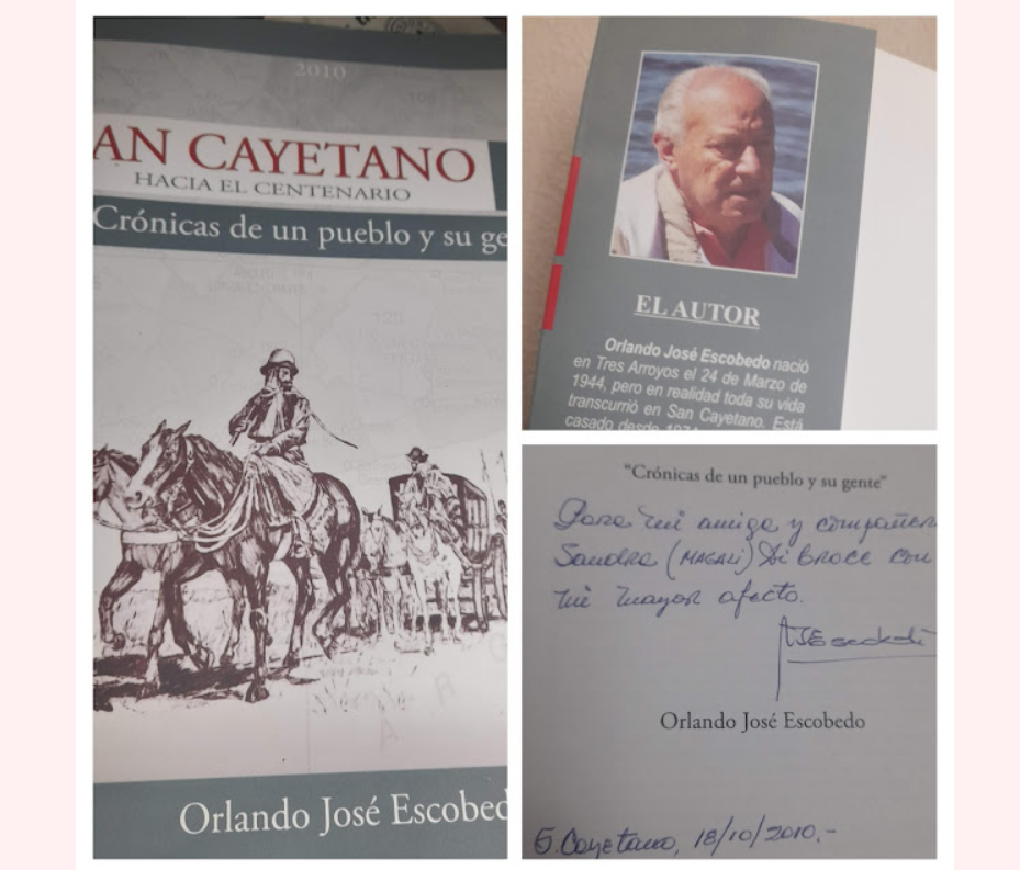 En 2010 yo era Concejal y pedí se declare de Interés Municipal, una obra que hizo en virtud del próximo centenario de San Cayetano titulada “SAN CAYETANO, HACIA UN CENTENARIO Crónicas de un Pueblo y su gente” donde relata costumbres y leyendas de nuestro Pueblo, y él me regaló una copia dedicada.