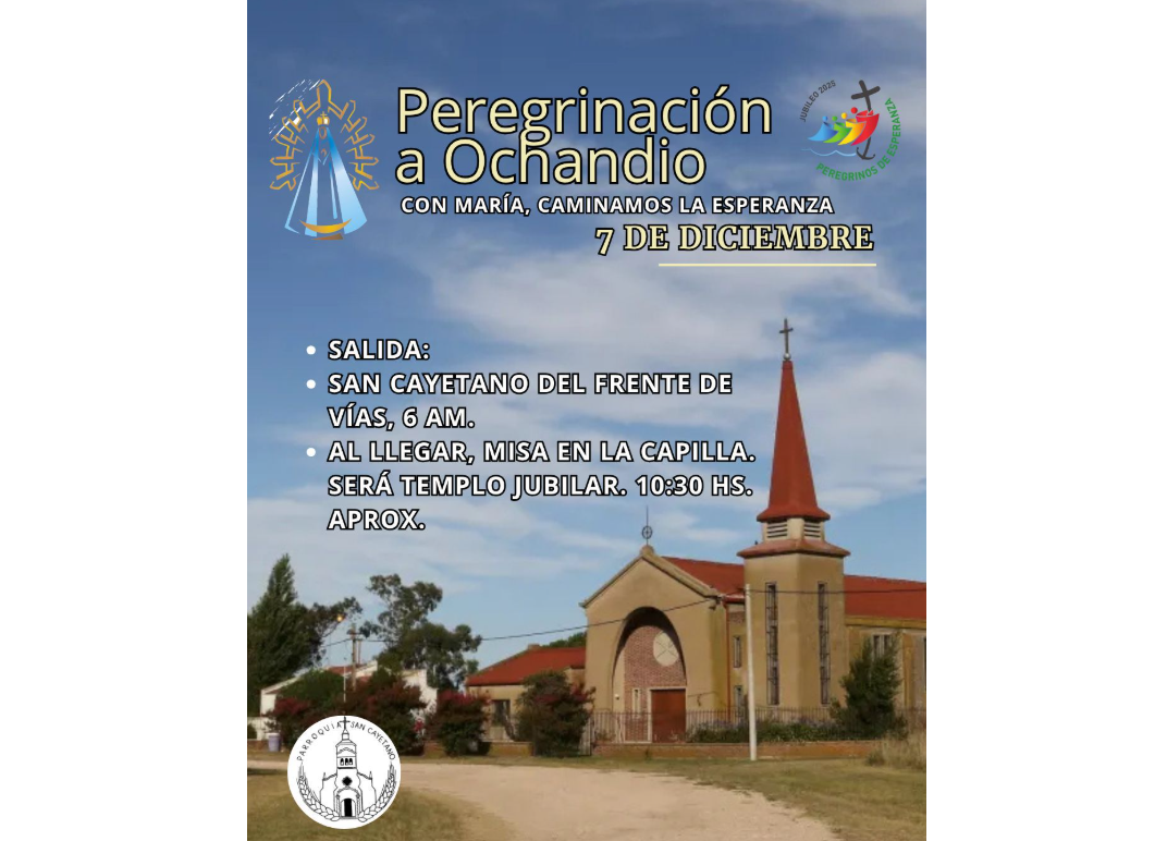 La Parroquia San Cayetano invita a toda la comunidad a participar de la Peregrinación a Ochandío, que se realizará el domingo 7 de diciembre, bajo el lema: “Con María, caminamos la esperanza”.