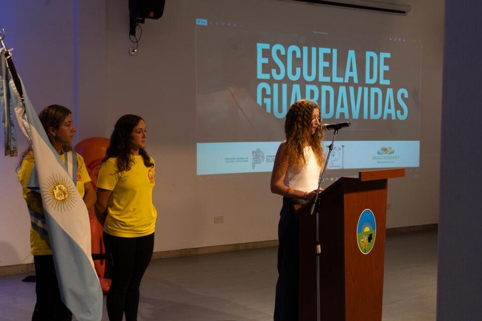 Con profunda emoción se vivió ayer el acto de egreso de la primera cohorte de la Escuela de Guardavidas de San Cayetano, una iniciativa del gobierno municipal canalizada en el Ministerio de Educación Provincial a través de Jefatura Distrital de Educación con las modalidades correspondientes, y administrada por el CEF Nº 21.