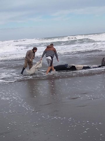 De inmediato, la Lic. Massola, quien ha realizado cursos internacionales sobre rescates marinos, dio aviso a Prefectura Naval Necochea quien envió al lugar 3 efectivos (2 de ellos especialistas en buceo), acompañados por la guardaparques Noelia Salmena.